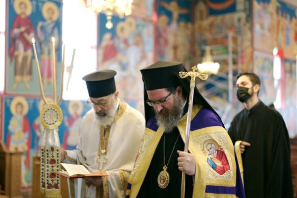 At the conclusion of the Divine Liturgy, the customary icon procession took place, while the clergy offered petitions for the people, civil authorities, and those who have reposed in the faith. Finally, a reading of excerpts took place from the Affirmation of Faith of the Seventh Ecumenical Council followed by the singing of the Great Prokeimenon, “Who is so great a God as our God? You are God who alone works wonders”.