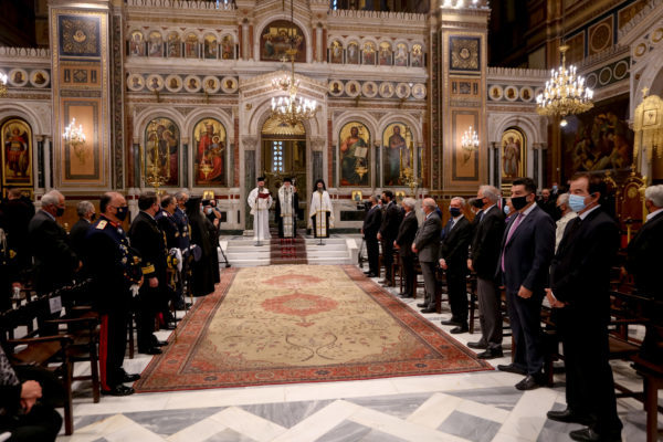 In Athens on Wednesday morning, the Archbishop of Athens and All Greece, His Beatitude Ieronymos, officiated at a Doxology service at the Athens Metropolitan Cathedral, attended by office-holders and the armed forces’ chiefs.