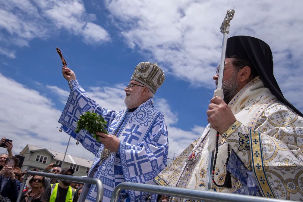 Melbourne’s Greek Orthodox bishop has condemned the actions of three men who broke the rules to grab the coveted wooden cross during the Blessing of the Waters swim.