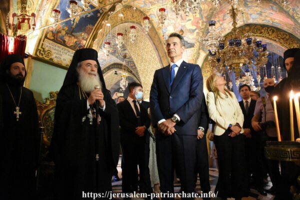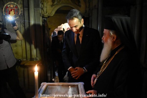 On the sidelines of his official talks, Mitsotakis also toured the Church of the Holy Sepulcher in Jerusalem, where he was greeted and given a tour of one of Christianity’s holiest sites by the Patriarch of Jerusalem, His Most Godly Beatitude Theophilos III.