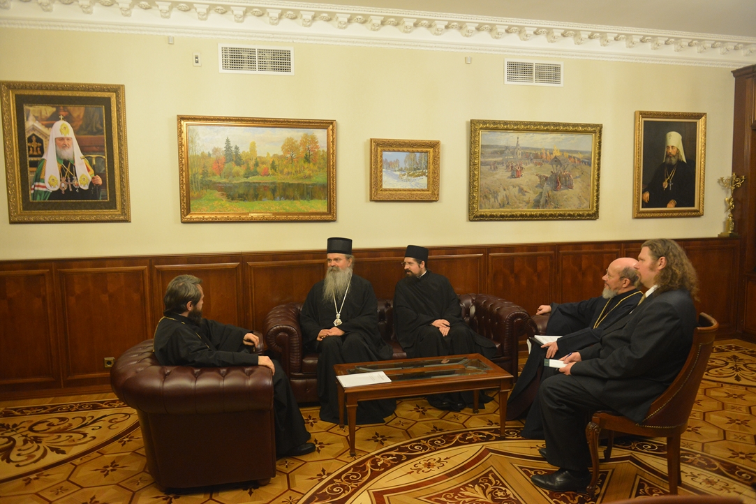 On 25 December 2018, Metropolitan Hilarion of Volokolamsk, chairman of the Moscow Patriarchate’s Department for External Church Relations (DECR) met with Bishop Teodosije of Raška-Prizren, Serbian Orthodox Church, and hieromonk Isidor (Jagodić), who have arrived as pilgrims to venerate the holy sites of the Russian Orthodox Church.
