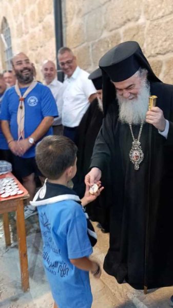 On the evening of Saturday, July 21/August 3, 2024, His Beatitude, our Father and Patriarch of Jerusalem Theophilos blessed the closing ceremony of the 43rd Camp “We Will Stay Here” of the Arabic-speaking Orthodox Scouts of Jerusalem in “Beit Jamal”, near Jerusalem, in the presence of the Consul General of Greece in Jerusalem, Mr Dimitrios Angelosopoulos.