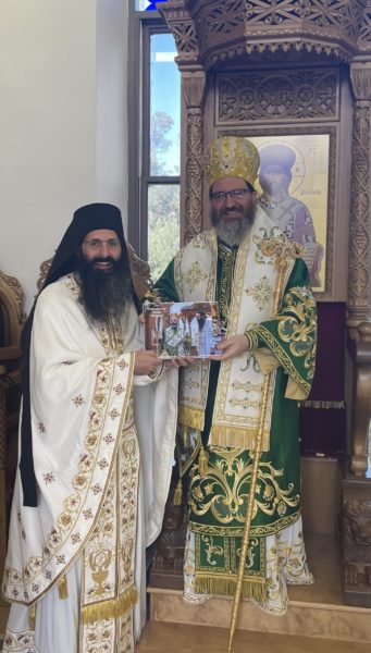 At the conclusion of the service His Grace presented the Abbot of the Holy Monastery, the Very Rev. Archimandrite Makarios Souris, a mini photo album of his recent ordinations that were conducted by His Eminence Archbishop Makarios of Australia during His recent visit to Perth. The album also includes the two sermons delivered by His Eminence at each ordination towards the newly ordained Abbot.