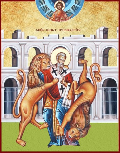 Dashuria e Perëndisë gufonte deri në atë pikë përbrenda tij, saqë i frymëzoi këto fjalë të zjarrta: “Më falni vëllezër, mos më pengoni të jetoj, mos dëshironi që të vdes, më lejoni të jem një imitues i pësimit të Perëndisë tim… Më lini të më hanë kafshët, me anë të të cilave do të arrij të gjej Perëndinë. Unë jam brumi i Zotit dhe dua të vdes nga dhëmbët e bishave, që të bëhem një bukë e pastër e Krishtit”. Të bëhej sipas imazhit të Krishtit, një bukë eukaristike, që të celebronte me anë të vetes së tij Liturgjinë e vërtetë dhe të përsosur, kjo ishte dëshira e hierarkut të shenjtë.