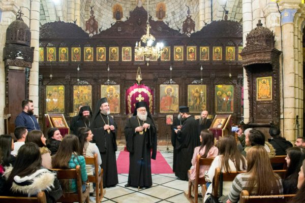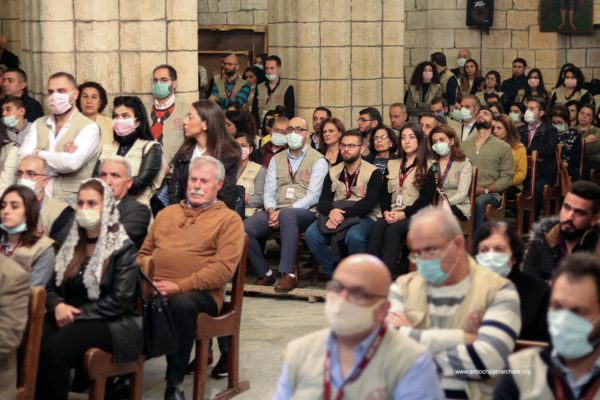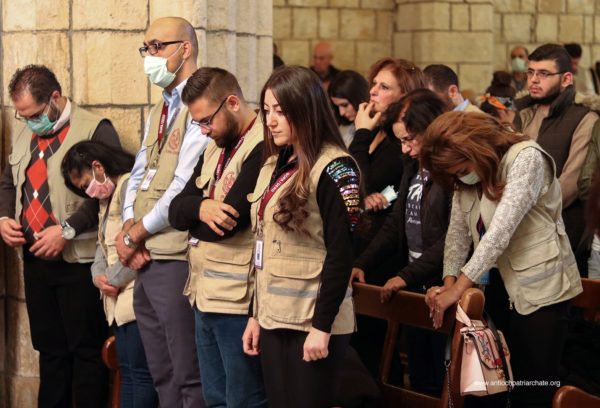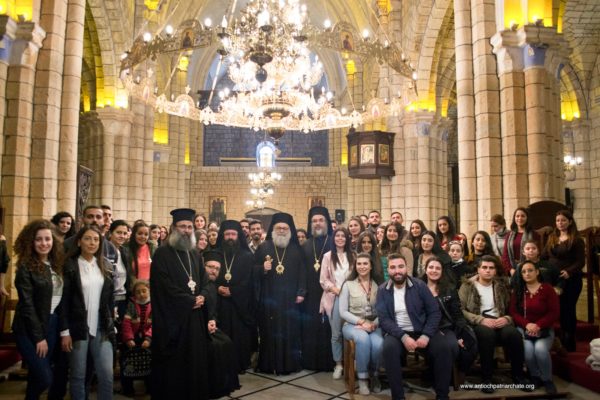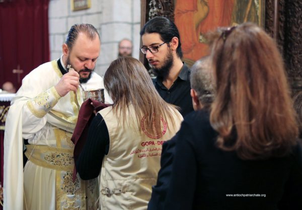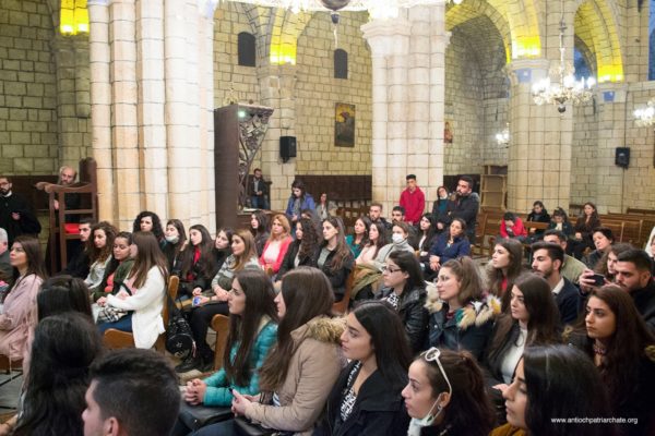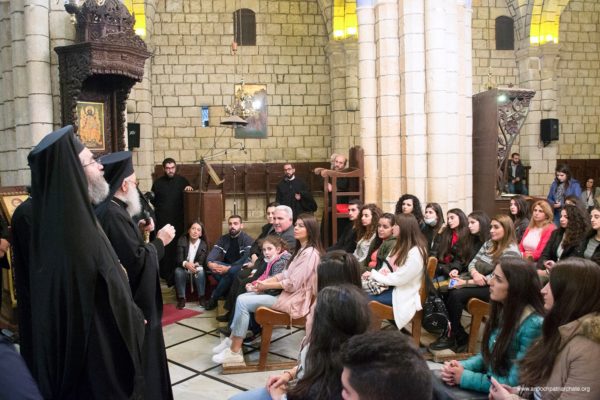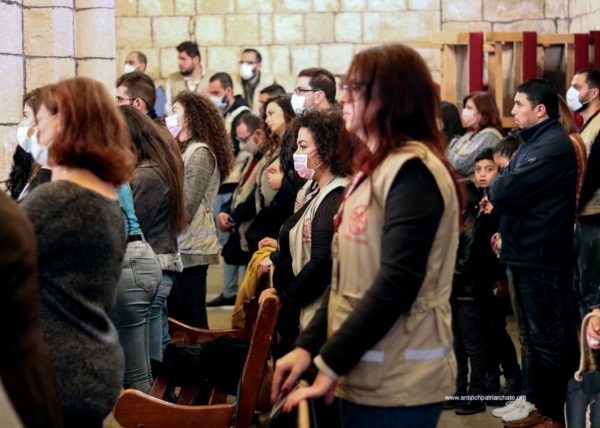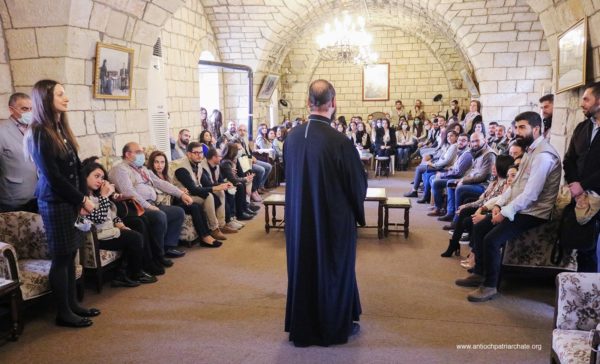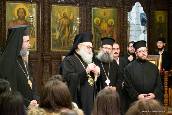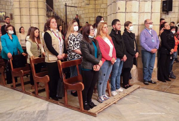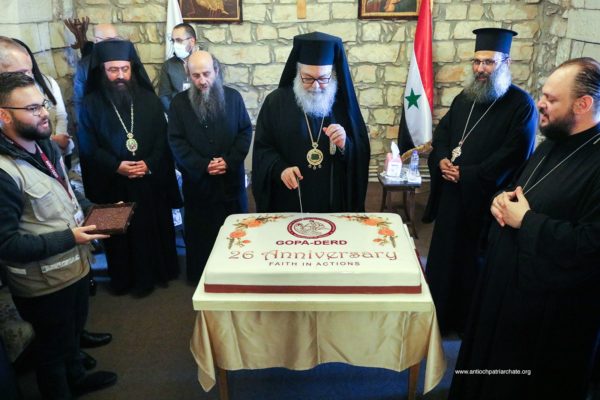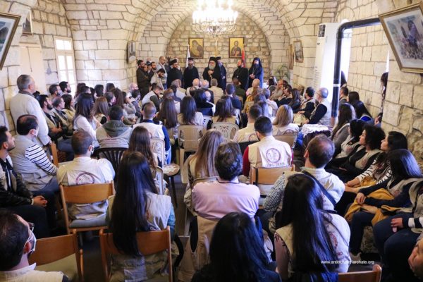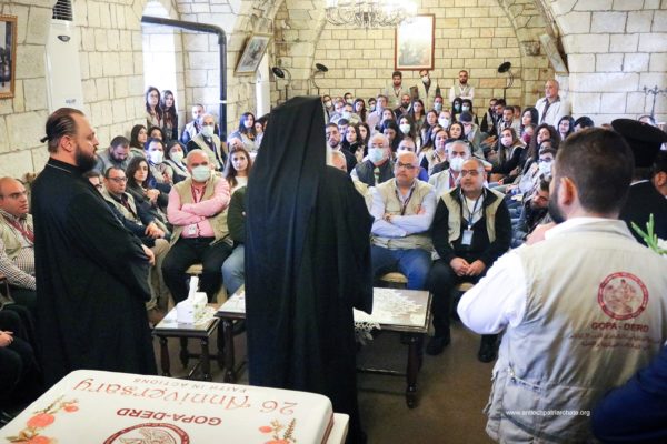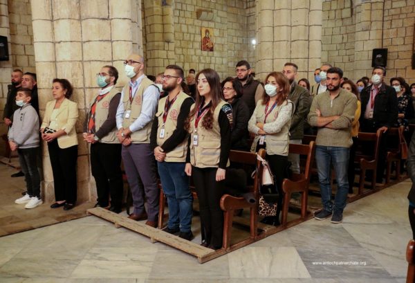 After the Liturgy, the Patriarch met with a group of Orthodox Sunday School teachers coming from Tartus, Safita, and the surrounding areas. His Beatitude noted the importance of youth activity and role in the Church. His Beatitude also met the team of the Department of Ecumenical Relations and Development coming from all the Syrian governorates, noting the importance of humanitarian and relief work and the ecclesiastical character that must be given to it. The meeting ended with the celebration of the sixteenth anniversary of the establishment of the department.