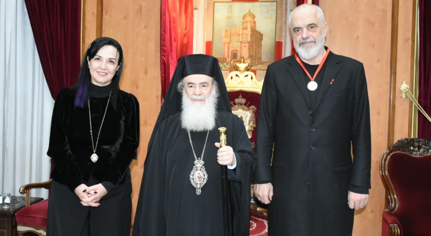 His Beatitude Theophilos III, the Patriarch of Jerusalem, received today Tuesday, January 27, the Prime Minister of the Republic of Albania, His Excellency Edi Rama and his wife, at the headquarters of the Jerusalem Patriarchate. The meeting came as part of a regional tour by the Albanian official.