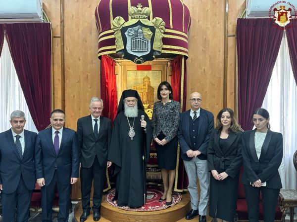 The Patriarch of Jerusalem, His Beatitude Theophilos III, welcomed today at the Orthodox Patriarchate of Jerusalem, the Minister of Foreign Affairs of Georgia, Maka Botchorishvili, and the accompanying diplomats and officials, in a spirit of Christian fellowship and gratitude to the Lord. His Beatitude received the delegation with warmth and reflected that their visit arrives at a moment when the region yearns for peace, recalling the words of the Apostle, “For God is not the author of confusion but of peace” (1 Corinthians 14:33).