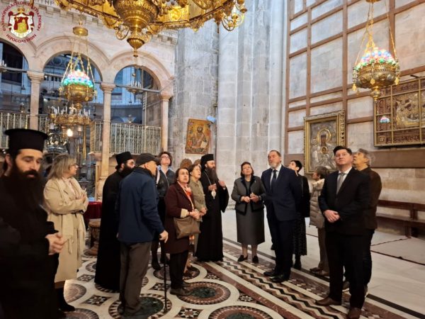 Following the meeting, the next day, Her Excellency participated in the Liturgy of the Presanctified Gifts on the Horrendous Golgotha, presided over by His Eminence Isidoros of Hierapolis, the Sacristan of the Church of the Holy Sepulchre. In this most sacred space, where Christ bore the weight of the Cross for the world’s salvation, the Minister joined in prayer and contemplation, embracing the spiritual depth of the Lenten journey.