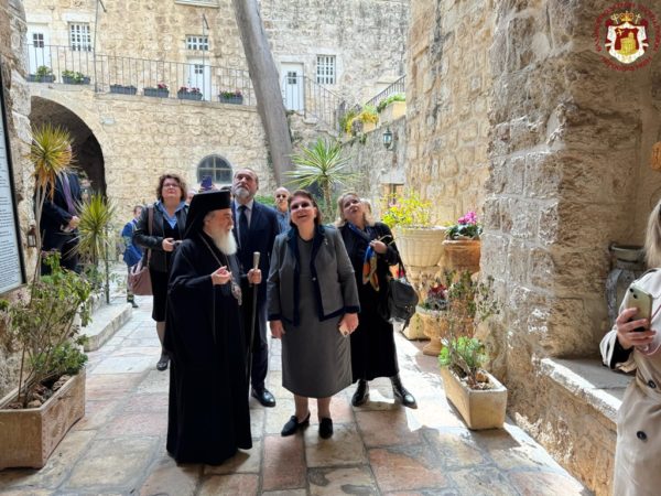Later in the day, Her Excellency visited the Shrine of the Theotokos’ Tomb in Gethsemane and the Monastery of the Holy Cross, where the Patriarchate has undertaken the establishment of the Centre for Theological Studies and Research. This centre stands as a beacon of Christian scholarship, echoing the words of the Apostle Paul: “So then, brothers and sisters, stand firm and hold fast to the teachings we passed on to you.” (2 Thessalonians 2:15).