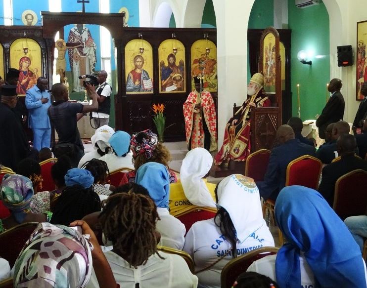 In the evening His Beatitude officiated at the Great Vespers of the Inauguration at the Holy Cathedral of St Dimitrios in Pointe-Noire, having first placed the holy relics on Holy Altar which was to be inaugurated.