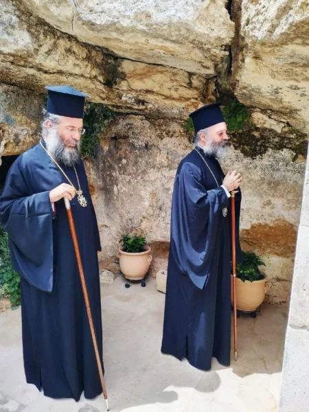 His Eminence Archbishop Makarios of Australia made a visit on the Saturday of Lazarus, 16 April, 2022, to His Eminence Metropolitan Prodromos of Rethymnos, to wish him well and congratulate him on his recent enthronement as Metropolitan.