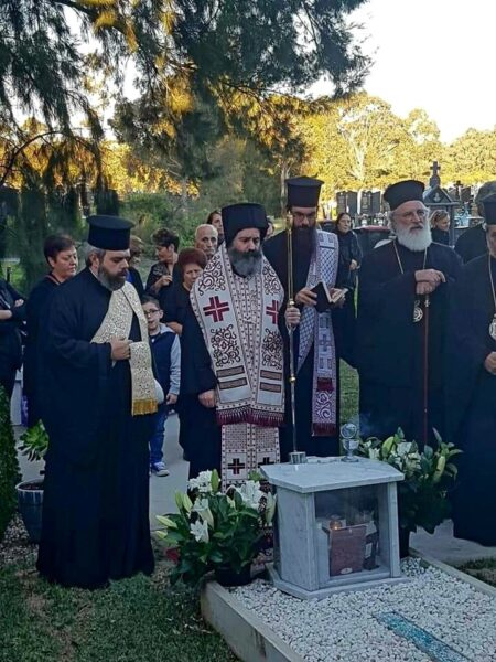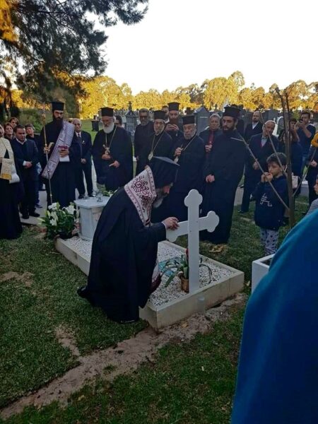 His Eminence Archbishop Makarios praying for the repose of the soul of his predecessor Archbishop Stylianos of Blessed memory,Rookwood 30.06.2019