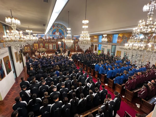 His Grace Bishop Kyriakos of Sozopolis reminded students of the opportunity of fellowship that they have during this period. He recalled the memorable moments in any sporting competition, particularly in the Olympic Games, when an athlete who is struggling to make it to the finish line is supported by other athletes and taken to the end. He encouraged the students to ‘lift each other up’ and to work together to achieve their goals.