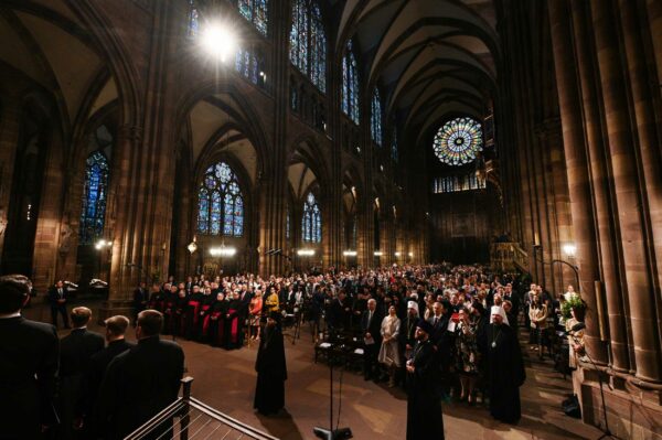 A concert of the choir of the Kiev Theological Schools followed. The choir directed by Archimandrite Leonty (Tupykalo) performed the Orthodox liturgical hymns in the ancient Strasbourg Cathedral.