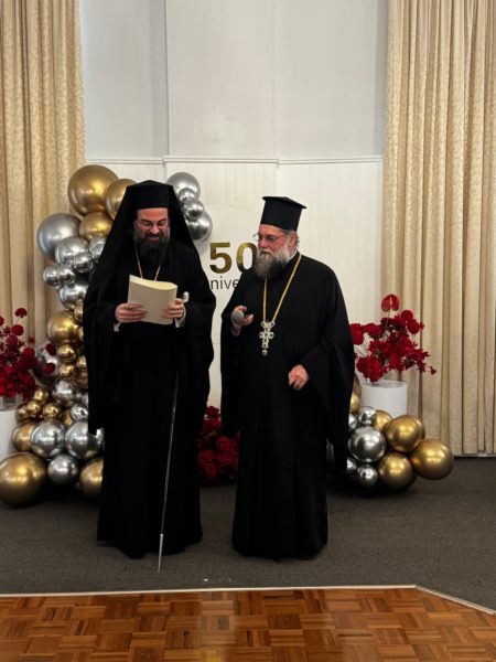 The event was honoured with the presence of His Grace Bishop Evmenios of Chora, representing His Eminence Archbishop Makarios of Australia, who conveyed his heartfelt wishes, paternal love and hierarchal blessings for this historic anniversary.