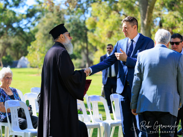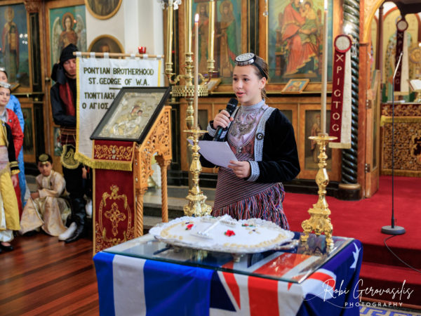 The commemoration began with a memorial service held at the Church of Sts Constantine and Helene. Present for the service was the Consul for Greece in Perth, Ms Eleni Georgopoulou, as well as representatives from the Hellenic Community of WA, the Pontian Brotherhood of WA, the Cretan Brotherhood of WA, staff and students of St Andrew’s Grammar and the Greek Language and Culture Institute of Evangelismos.