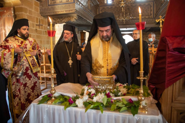 The Holy Relics were translated to the cathedral and received by the Bishop of Nitrias, His Grace Nikodimos, and the Elder Archimandrite Ioannis, the Abbot of Holy Monastery of the Apostle Barnabas.