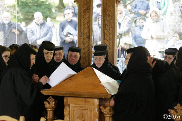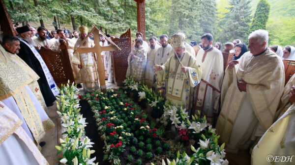Preasfințitul Părinte Andrei, Episcopul Covasnei și Harghitei, şi Preasfințitul Părinte Gurie, Episcopul Devei și al Hunedoarei, au oficiat Sfânta Liturghie în altarul de vară al aşezământului monahal.