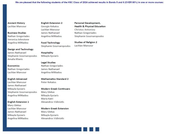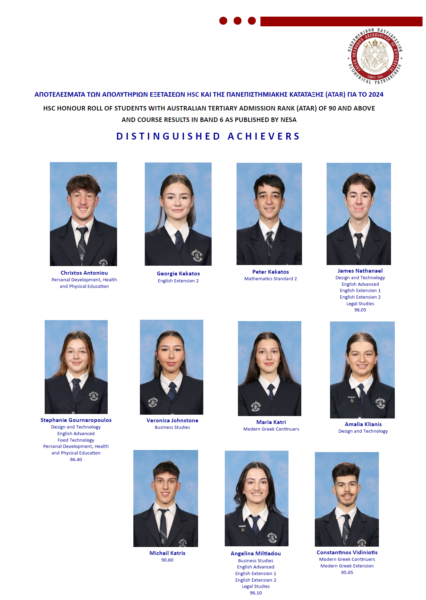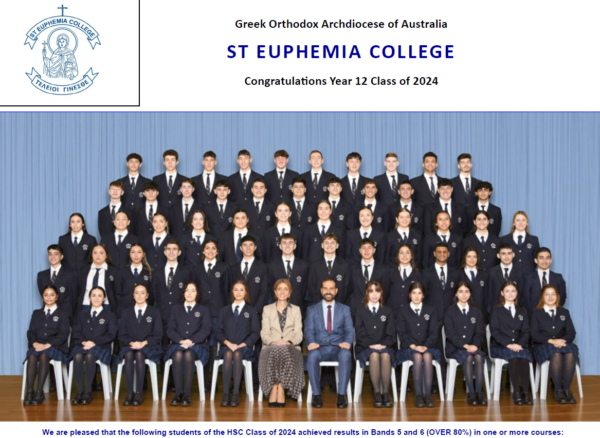 St Euphemia College’s Year 12 students, including 2 Year 11 accelerants that comprise the Class of 2024, have received their results from the NSW Education Standards Authority (NESA) and in ‘Striving for Excellence’ they indeed achieved it. As a Greek Orthodox School committed to the education of the whole person, students showcased their intellectual prowess in the two levels of the Modern Greek course (Modern Greek Extension and Modern Greek Continuers) as well as the advanced levels of Mathematics (Mathematics Advanced, Mathematics Extension 1) and English (English Advanced, English Extension 1 and 2).