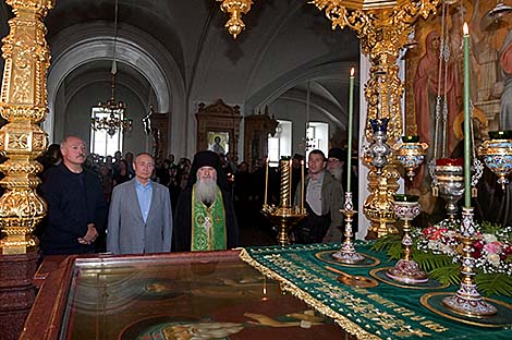 A 19th-century icon of the Mother God of Konevets was presented to Putin at the monastery. A similar icon was given to Lukashenko. The Rossiya-24 (VGTRK) TV channel broadcast the presidents’ visit to the monastery.