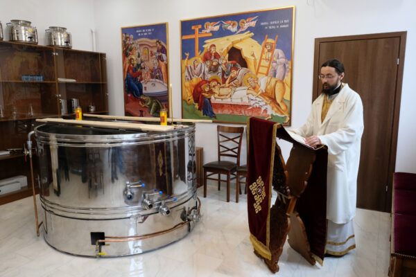„Mâine va fi partea în care se va concentra pe cazanul cel mare unde se va pune untdelemnul. Vinul dă posibilitatea ca din plantele pe care le introducem acolo să rămână esenţa lor”, iar plantele se vor aşeza în partea de jos a vasului, potrivit Înaltpreasfinţiei Sale.