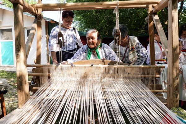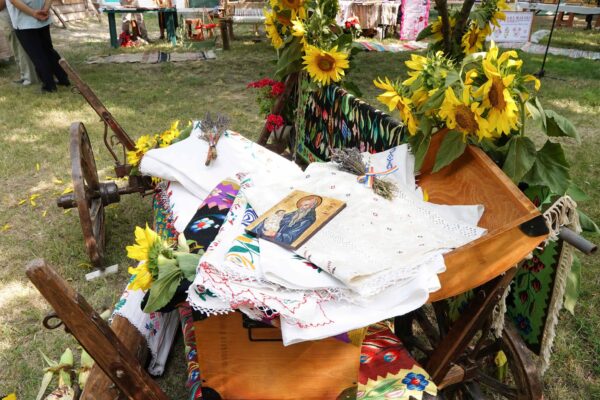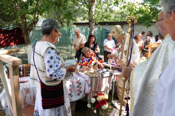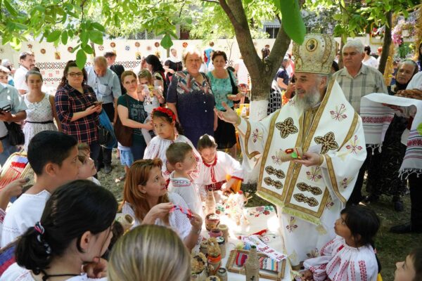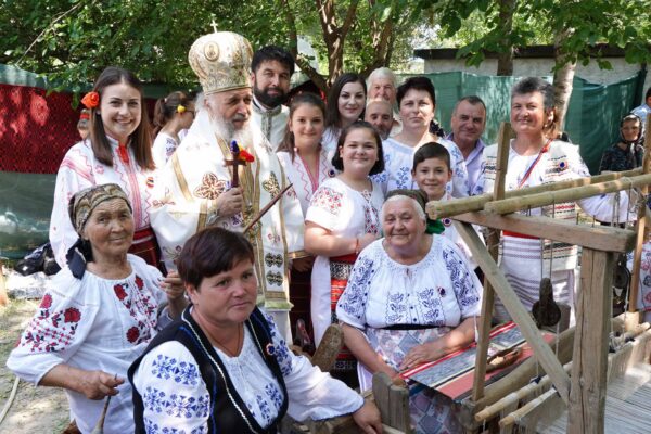 După ce a oficiat Sfânta Liturghie cu prilejul hramului în altarul de vară al parohiei, Arhiepiscopul Casian al Dunării de Jos a vizitat expoziția organizată în contextul Anului Omagial al satului românesc și chiar a demonstrat că nu este deloc străin de meșteșugurile tradiționale.