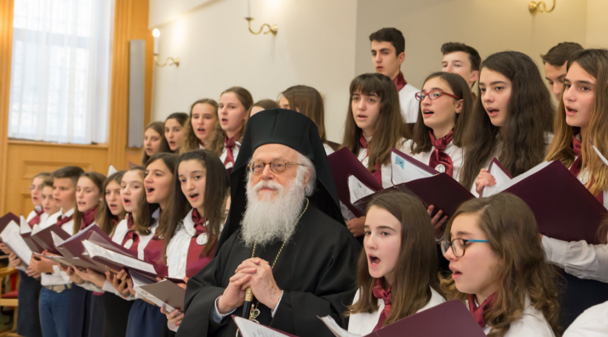În imagini: Mai mulţi elevi au străbătut peste 200 km pentru a-l colinda pe Arhiepiscopul Albaniei