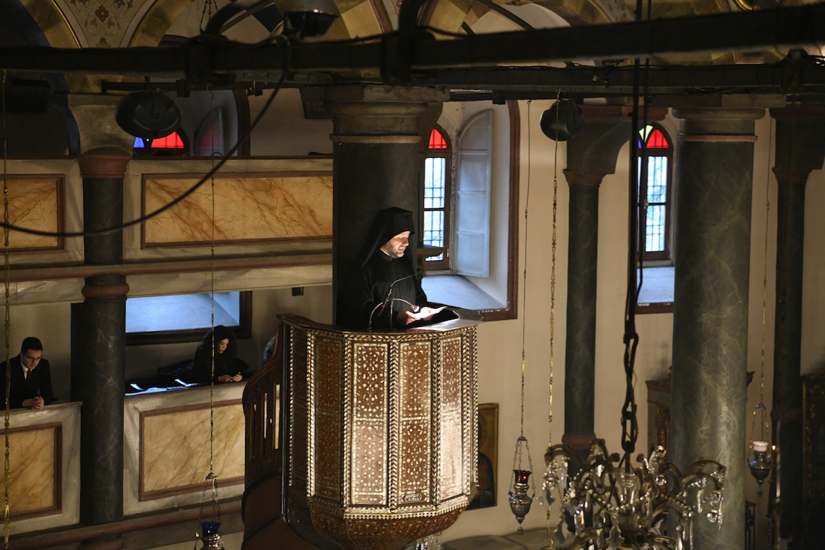 După Sfânta Evanghelie, Arhimandritul Ioachim Billis, secretarul Sfântului Sinod, a dat citire mesajului de Crăciun al Patriarhului Ecumenic în care se subliniază că Biserica lui Hristos este locul „mântuirii comune”, al „libertății comune” și al speranței „Împărăției comune”, precum şi „modul de viețuire a adevărului eliberator”, centrul căruia îi aparține „exprimarea adevărului în iubire”.