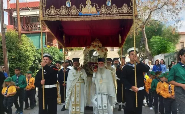 Procesiune din ziua de prăznuire a fost condusă de Înaltpreasfințitul Părinte Iustin, Mitropolitul de Nea Krini și Kalamaria, alături de care s-au aflat mai mulți ierarhi greci.