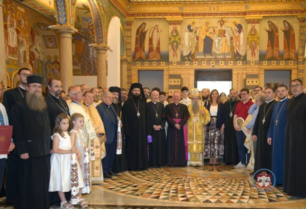 Au slujit cu această ocazie Arhiepiscopul Atanasie al Marii Britanii și Irlandei de Nord, Episcopul Nestor al Devei și Hunedoarei, Episcopul Siluan al Italiei și Arhiereul vicar Gherontie Hunedoreanul.