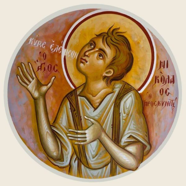Saint Nicholas the Pilgrim was born in Steiri of Boeotia in Greece in the year 1075. His parents were poor farmers that did not give him an education. When he was eight years old his mother sent him to become a shepherd. He did not last long as a shepherd however, because one day he suddenly called out “Kyrie Eleison”, which he then began to say repetitively. His constant repetition of this phrase brought him conflict and aggression in populated places, and he suffered much oppression. Even his mother punished him for this. In Orthodox tradition, this is why he is regarded as a Fool for Christ.