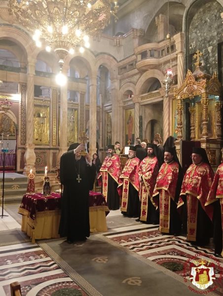 At 10.00 a.m. on Thursday, March 10/23, 2018, a Doxology was held in the Catholicon of the Church of the Holy Sepulchre on the occasion of the national anniversary of March 25, 1821, as thanks to God for the national rebirth and liberation from the Turkish yoke and as a petition for the repose of the souls of those who heroically fell on the battlefields of the nation.