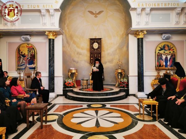 Afterwards, in the hall of the Patriarchate, the Consul General of Greece in Jerusalem, Mr Evangelos Vlioras, spoke on behalf of the Greek State as follows: