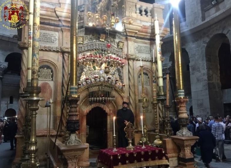 On Monday morning, May 7/20, 2019, the commemoration of the appearance of the sign of the Precious Cross in the Heavens was celebrated with the Divine Liturgy in Golgotha, led by the Most Reverend Metropolitan Joachim of Helenoupolis.