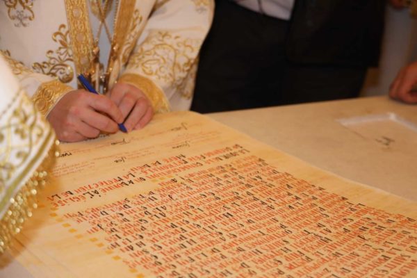 The consecration service was officiated in Romanian and French by Romanian Metropolitan Iosif of Western and Southern Europe, who was joined by Archbishop Job of Telmessos (Ecumenical Patriarchate of Constantinople), by Metropolitan Ignatios of Western and Meridional Europe (Antiochian Patriarchate), by Romanian Bishop Iustin of Maramureş and Sătmar, by Romanian Bishop Timotei of Spain and Portugal, by Romanian Auxiliary Bishop for Western Europe Marc of Neamț, and by HG Atanasie of Bogdania, Auxiliary Bishop of the Romanian Orthodox Diocese of Italy.