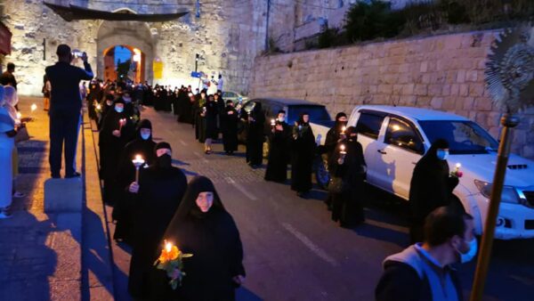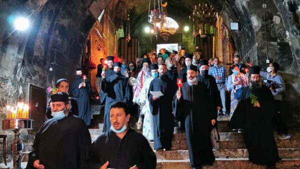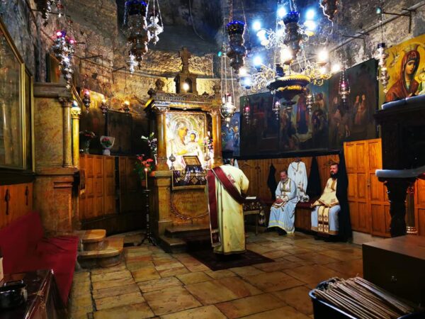 In Jerusalem, a litany of the holy icon of the Dormition of the Theotokos, the Ever-Virgin Mary, was held at dawn on Tuesday at the Tomb of the Panaghia in Gethsemane.