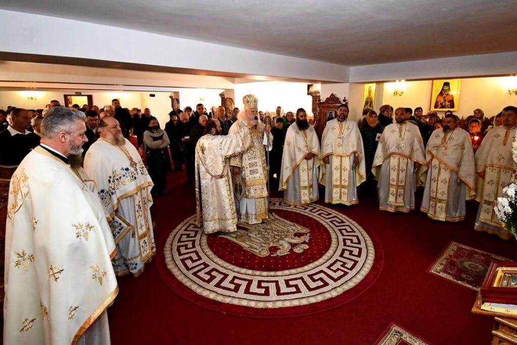 Preasfințitul Părinte Calinic Botoşăneanul, Episcop-vicar al Eparhiei Iaşilor, alături de un sobor de preoţi şi diaconi, a oficiat joi, 26 decembrie 2019, Sfânta Liturghie în Paraclisul „Sfântul Cuvios Nicodim de la Tismana” al Mănăstirii Hadâmbu, care şi-a serbat hramul. Ierarhul a fost întâmpinat la orele dimineţii de autorităţile locale, de soborul slujitorilor şi de pelerini. În cadrul slujbei au fost pomeniţi ctitorii aşezământului monastic trecuţi la Domnul. Răspunsurile la strană au fost oferite de părinţii aşezării monahale şi de un grup de preoţi şi diaconi, care au interpretat la momentul Chinonicului câteva colinde. La momentul potrivit s-au înălţat rugăciuni pentru sănătatea celor ce şi-au aniversat onomastica şi ziua de naştere. PS Părinte Calinic Botoşăneanul a citit la final mai multe rugăciuni de dezlegare şi pentru sănătatea celor prezenţi. Preasfinţia Sa a adresat apoi un cuvânt de învăţătură în care a făcut referire la monahismul românesc din cele mai vechi timpuri şi la importanţa acestuia pentru poporul român. În acelaşi timp, Episcopul-vicar al Eparhiei Iaşilor a făcut referire la rolul pe care l-a avut Sfântul Cuvios Nicodim de la Tismana, asupra vieţii monahale din ţara noastră. Preasfinţia Sa l-a felicitat pe arhimandritul Nicodim Gheorghiţă, stareţul Mănăstirii Hadâmbu, cu prilejul serbării onomasticii, şi a scos în evidenţă jertfa pe care a depus-o în cele aproape trei decenii în aşezarea monahală din Dealul Mare. Ierarhul a mai adăugat că în prezent Mănăstirea Hadâmbu a început demersurile pentru construirea unei clopotniţe şi i-a îndemnat pe oameni să sprijine această lucrare importantă, transmiţând apoi binecuvântarea Înaltpreasfinţitului Părinte Teofan, Mitropolitul Moldovei şi Bucovinei. La rândul său, arhimandritul Nicodim Gheorghiţă şi-a exprimat recunoştinţa faţă de PS Calinic Botoşăneanul care a slujit Sfânta Liturghie, aducând bucurie atât obştii monahale, preoţilor slujitori dar şi pelerinilor prezenţi în număr mare. Părintele stareţ a apreciat implicarea Preasfinţiei Sale în toate lucrările desfăşurare în aşezarea monahală din Dealul Mare şi a mulţumit pentru implicarea deosebită în proiectul de edificare al noii clopotniţe. Pelerinii au primit la ieşirea din sfântul locaş un pahar de vin fiert, fructe şi colaci, iar apoi au fost invitaţi la o agapă frăţească.