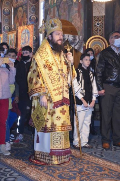 Sfânta Liturghie arhierească a fost săvârşită de ierarh, înconjurat de un sobor de preoţi şi diaconi, iar răspunsurile liturgice au fost date de corul parohiei.