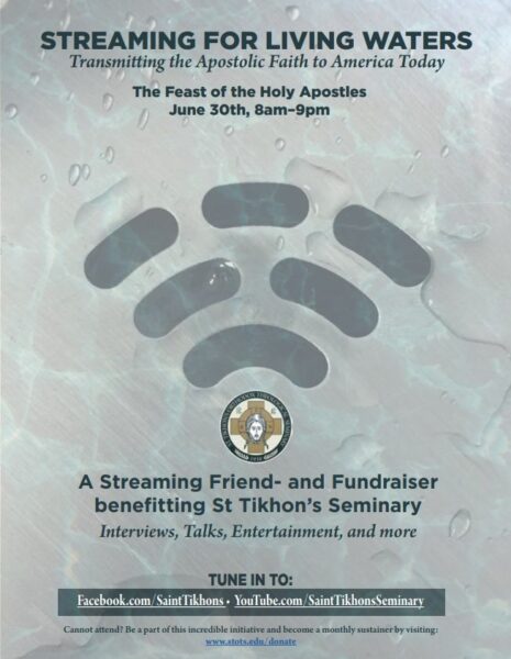 Today, Tuesday June 30 from 8am-9pm, on the Feast of the Holy Apostles, tune in to St Tikhon’s Orthodox Theological Seminary. Interviews, Talks, Entertainment and more.