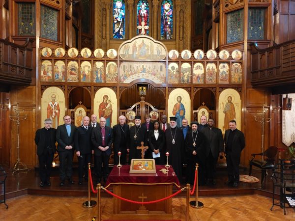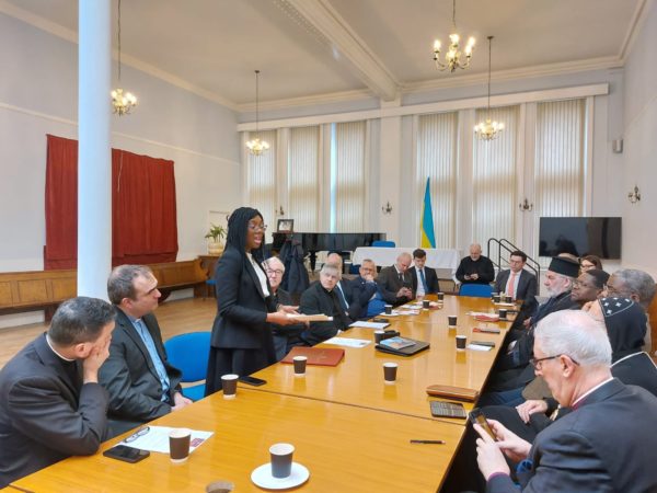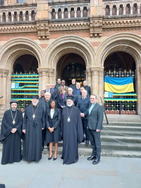 On Wednesday, 9th March 2022, His Eminence Archbishop Nikitas of Thyateira and Great Britain attended the London Church Leader’s Meeting hosted at the Ukrainian Catholic Cathedral of the Holy Family. The gathering of London-based Christian Leaders was addressed by Faiths Minister Kemi Badenoch MP and His Grace Bishop Kenneth Nowakowski of the Ukrainian Catholic Eparchy. Following a lengthy discussion on matters of mutual interest, a prayer for Ukraine was offered in the Cathedral.