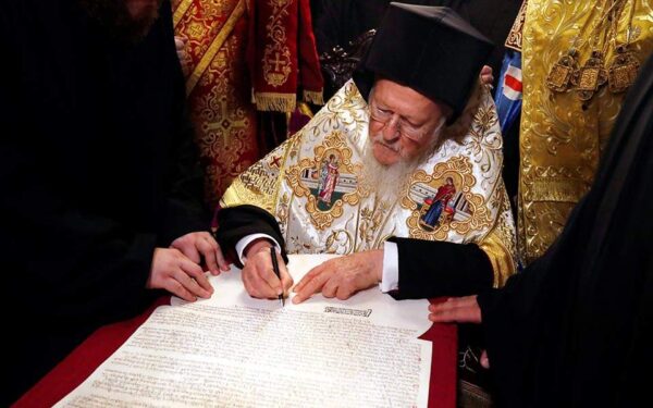 A day before the Epiphany, also known as the Feast of the Holy Theophany, on Jan. 5, 2019, the Ecumenical Patriarch of Constantinople, His All Holiness Bartholomew I, signed the Tomos granting Autocephaly to the Ukrainian Church at the Patriarchal Cathedral of St. George in the Fanar district — with the Metropolitan of Kiev and All Ukraine, His Beatitude Epiphanius, officially receiving the Tomos.