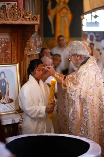 „Îmi amintesc că în timp ce era în vasul pentru Taina Botezului, deși simțea mâna mea deasupra capului în timpul scufundării, mi-a mărturisit mai târziu că a fost pe deplin conștientă de prezența unei alte persoane în apă, alături de ea. Simțea că nu eu săvârșeam botezul, ci o altă prezență – sfântă și tainică – era cea care o boteza cu adevărat”, a povestit pr. Andrei.