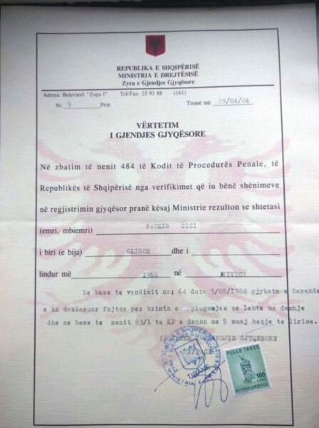 Më poshtë, po paraqesim sipas radhës kohore historikun e marrëdhënieve që Foti Cici ka pasur me Kishën Orthodhokse, si dhe metodat mashtruese e të gabuara që ai ka përdorur që në krye të herës vetëm për të nxjerrë përfitim vetjak. Fatmir (Foti) Cici, i lindur në Nivicë-Bubar të Sarandës, ka mbajtur kurdoherë të fshehtë dhe në heshtje krimin e plagosjes me dashje që ka kryer ndaj bashkëfshatarit të tij dhe për të cilin Gjykata e Rrethit Sarandë e ka shpallur fajtor me vendimin nr. 64, datë 9/09/1988, duke e dënuar me 5 muaj heqje lirie. Nëse Kisha Orthodhokse do të ishte njohur në kohë me këtë fakt qëllimisht të fshehur, karriera e tij kishtare do kishte përfunduar që në hapat e parë të saj. Kjo e vërtetë u zbulua vite më vonë, kur personi në fjalë u ekspozua dendur në hapësirat mediatike. (Shih Vendimin e Gjykatës, foto nr.1).