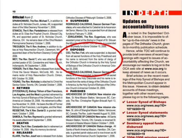 Për shkak se Foti Cici, njëherë moti klerik orthodhoks në Kanada dhe tashmë prej kohësh i shkarkuar dhe i zhveshur nga priftëria, ka rifilluar një fushatë të pa skrupull sulmesh dhe shpifjesh ndaj klerikëve, teologëve dhe besimtarëve orthodhoksë brenda dhe jashtë Shqipërisë, ndjehemi të detyruar të sqarojmë besimtarët dhe opinionin e gjerë publik se kush është me të vërtetë ky pseudoklerik. Gjithashtu, po publikojmë për herë të parë dokumente zyrtare që demaskojnë katërçipërisht këtë njeri të mbrapshtë e mashtrues.