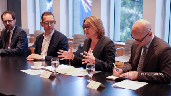 Also present at the meeting of the Ecumenical Patriarch with the Victorian Premier were State Minister Mr Steve Dimopoulos and State MPs Ms Kat Theophanous, Mr Nick Staikos, and Mr Lee Tarlamis, all from the ruling Labor Party.