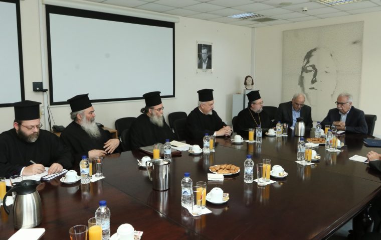 A meeting between the Holy Synod of the Church of Greece and Education Minister Costas Gavroglou was held at the education ministry on Tuesday, as part of an ongoing dialogue on how to implement an agreement regulating relations between the Church and State.
