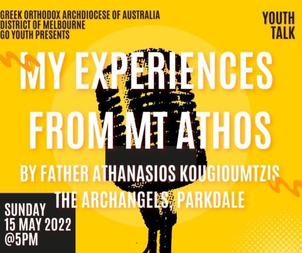 With the Blessing of His Eminence Archbishop Makarios of Australia, under the direction of His Grace Bishop Kyriakos of Sozopolis, the Youth of the Archdiocesan District of Melbourne will begin the organisation of a series of Talks on Mount Athos with the general title of “A conversation on Mount Athos”.