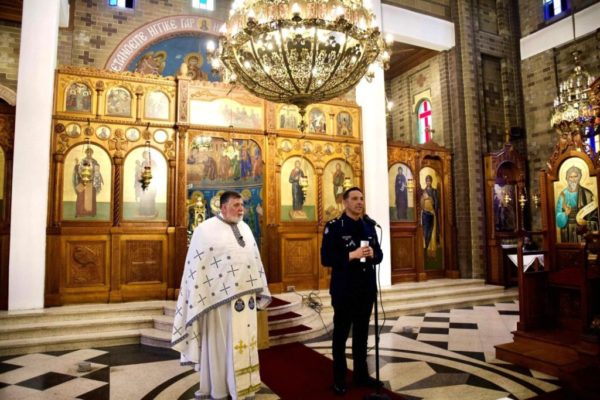 The Divine Liturgy and Doxology were celebrated by the Parish Priest, Fr Emmanuel Lykopantis, who is also responsible for the pastoral care of the police force. In attendance were members of the Board of the Hellenic Police Association of Victoria, led by its President, Acting Superintendent Mr. Andreas Markakis, along with Ms. Hilda Sirec, Assistant Commissioner of the Australian Federal Police (AFP) in charge of the Southern Command, and other senior officers.