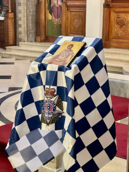 During the Divine Liturgy, the icon of Saint Artemios, donated by the Hellenic Police to the Hellenic Police Association of Victoria, was placed for veneration.