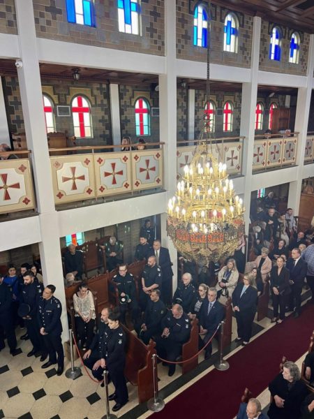 The Divine Liturgy and Doxology were celebrated by the Parish Priest, Fr Emmanuel Lykopantis, who is also responsible for the pastoral care of the police force. In attendance were members of the Board of the Hellenic Police Association of Victoria, led by its President, Acting Superintendent Mr. Andreas Markakis, along with Ms. Hilda Sirec, Assistant Commissioner of the Australian Federal Police (AFP) in charge of the Southern Command, and other senior officers.
